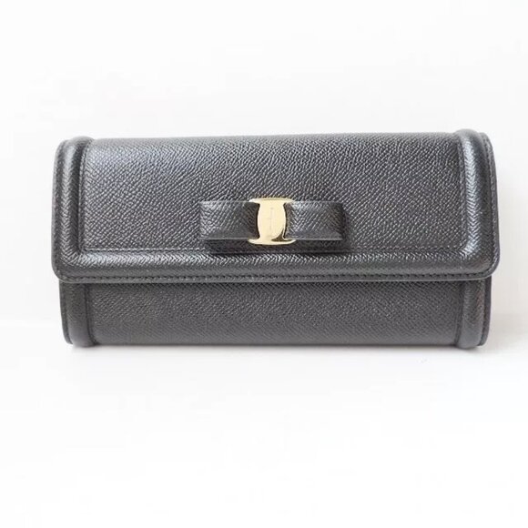 100 Auth Salvatore Ferragamo Vara 22D154 Black Leather Long Wallet 287 101624 Wallets Very well made.