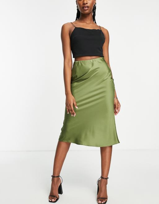 Miss Selfridge satin bias cut midi skirt in khaki Very well made.