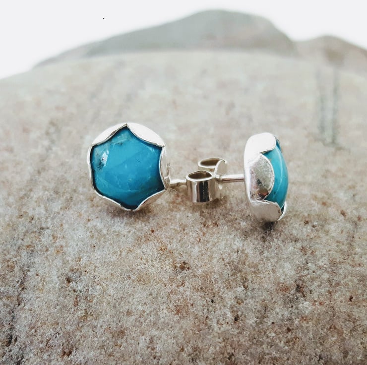 Turquoise and Silver Stud Earrings 8mm in Pet. Folksy Very well made.