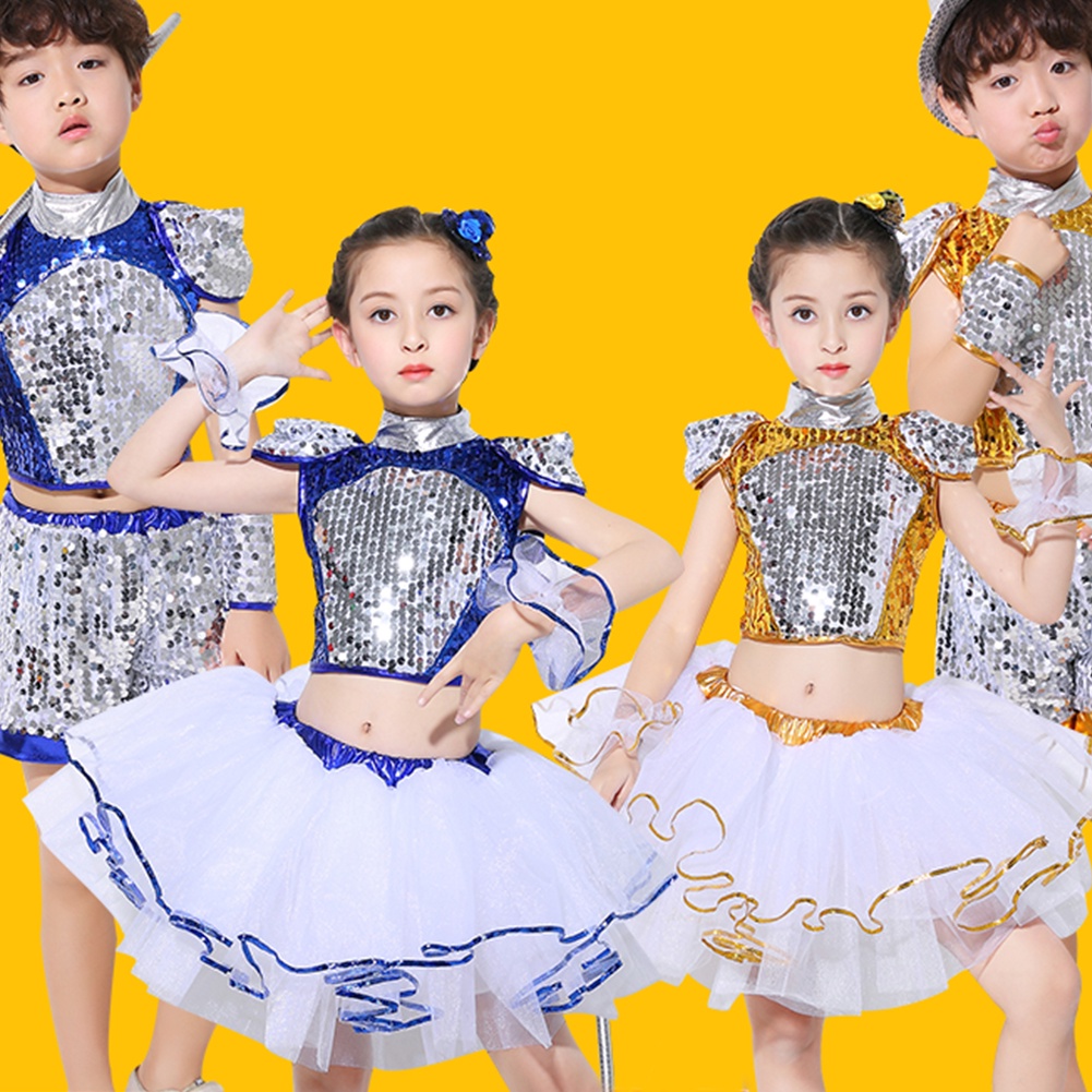 Lolanta Kids Sequins Modern Street Dance Costumes for Girls Boys Blue Yellow Sliver Hip hop Outfit School Team Tops Skirt Shorts Set with Wristband Shopee Philippines Very well made.