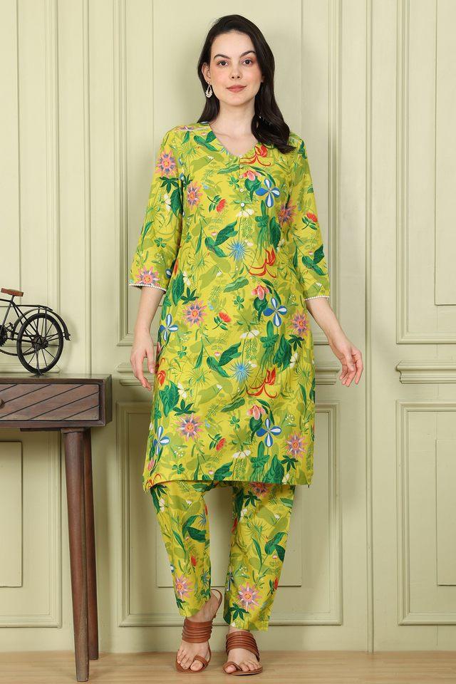Buy W Green Floral Cotton V Neck Women s Kurta Set Shoppers Stop Very well made.