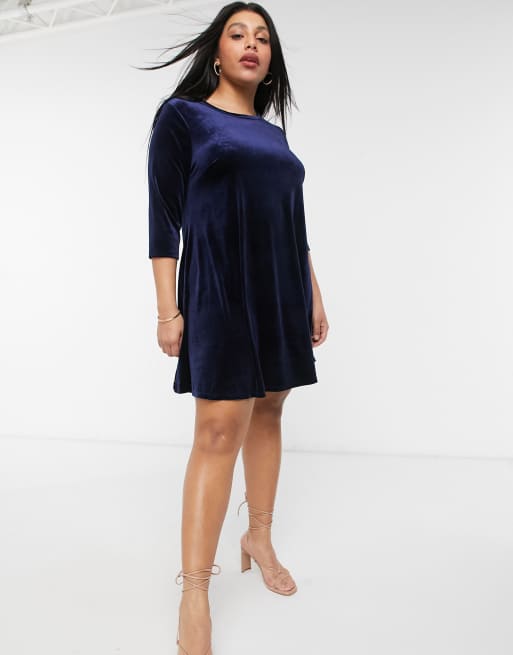 Simply Be Vestito a trapezio in velour blu navy Very well made.