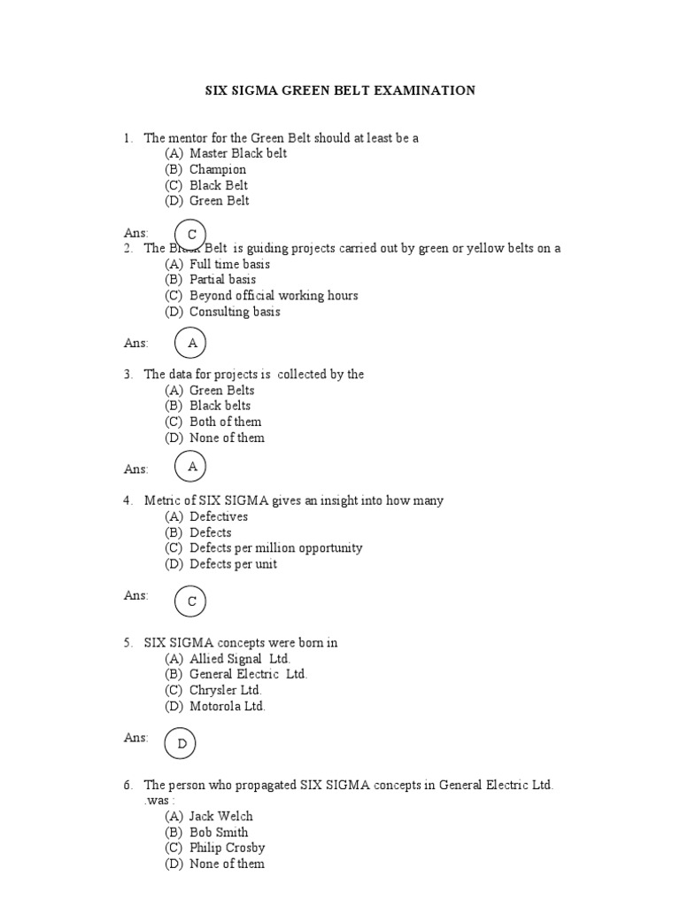 Six Sigma Green Belt Examination PDF Six Sigma Normal Distribution Very well made.