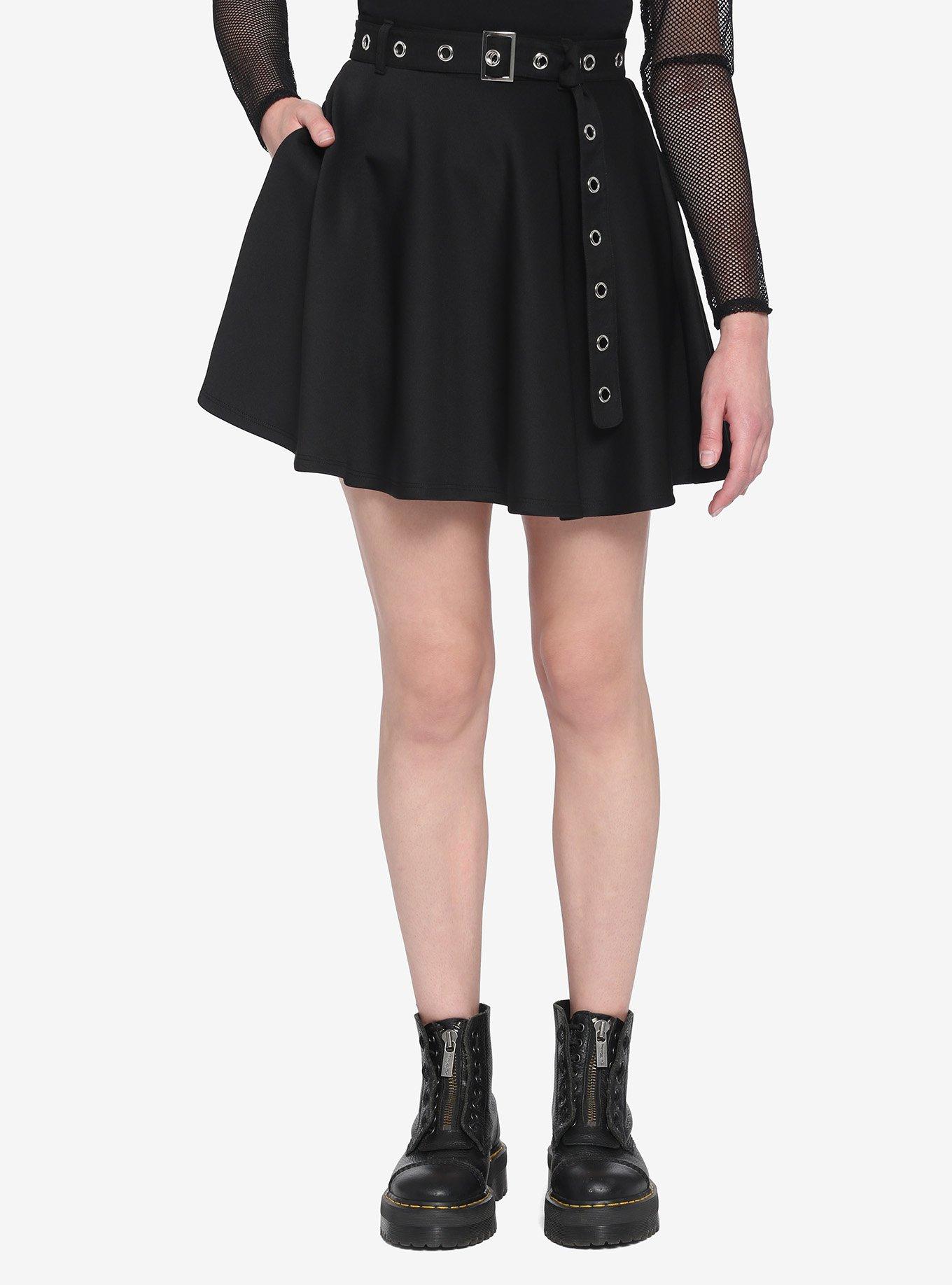 Black Skater Skirt With Grommet Belt Hot Topic Very well made.