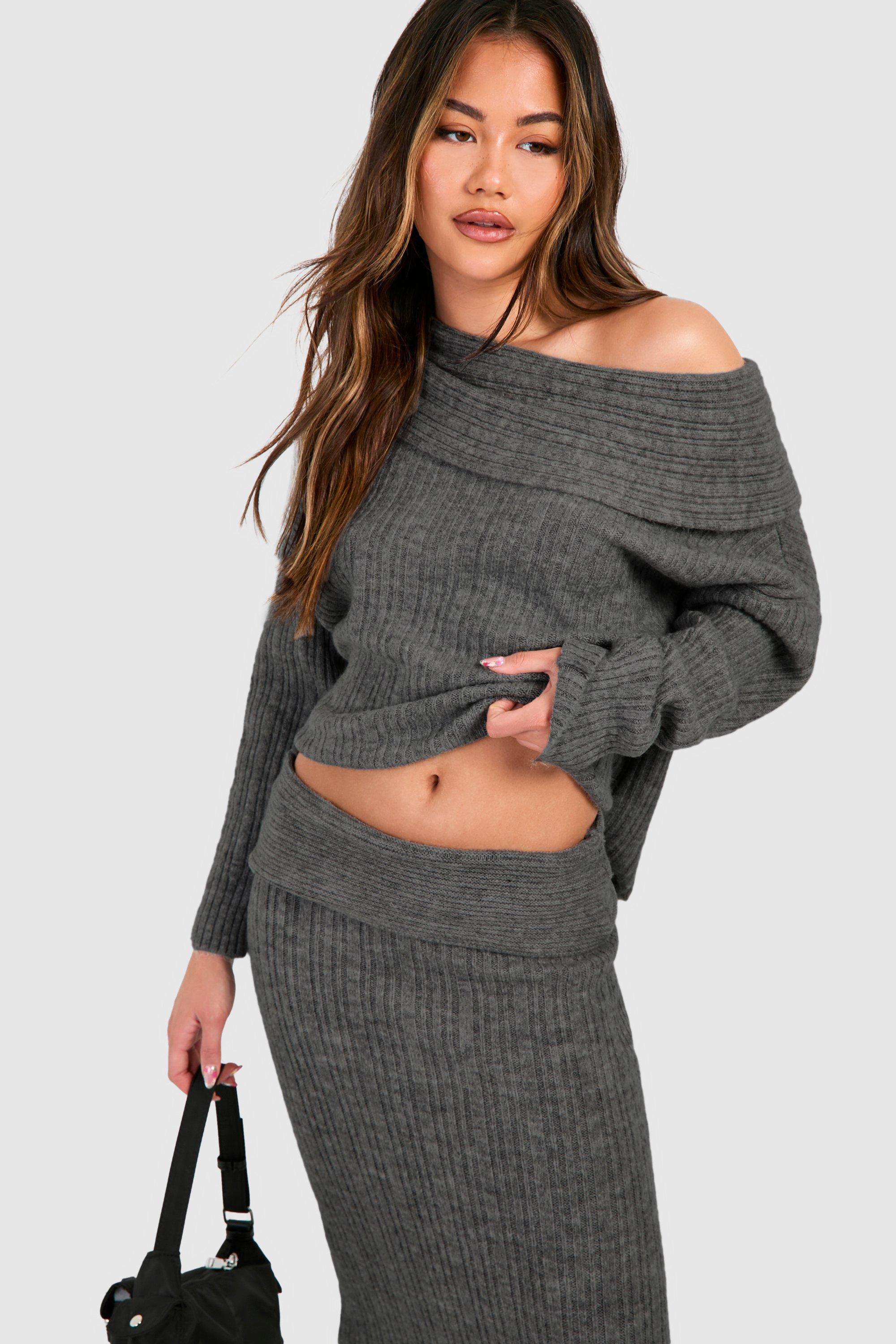 Off The Shoulder Sweater And Maxi Skirt Knitted Set boohoo USA Very well made.