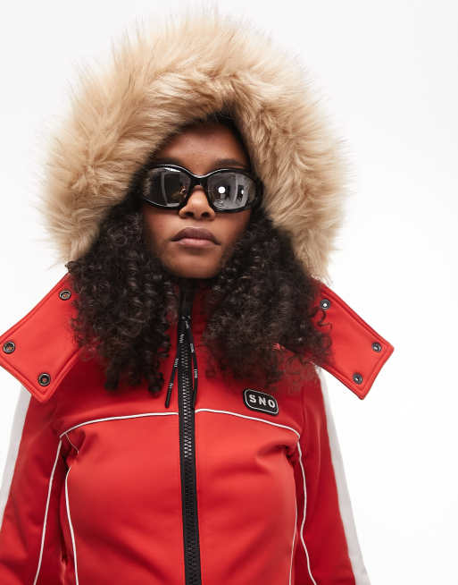 Topshop Sno Enger Skianzug in Rot mit ausgestelltem Bein Very well made.