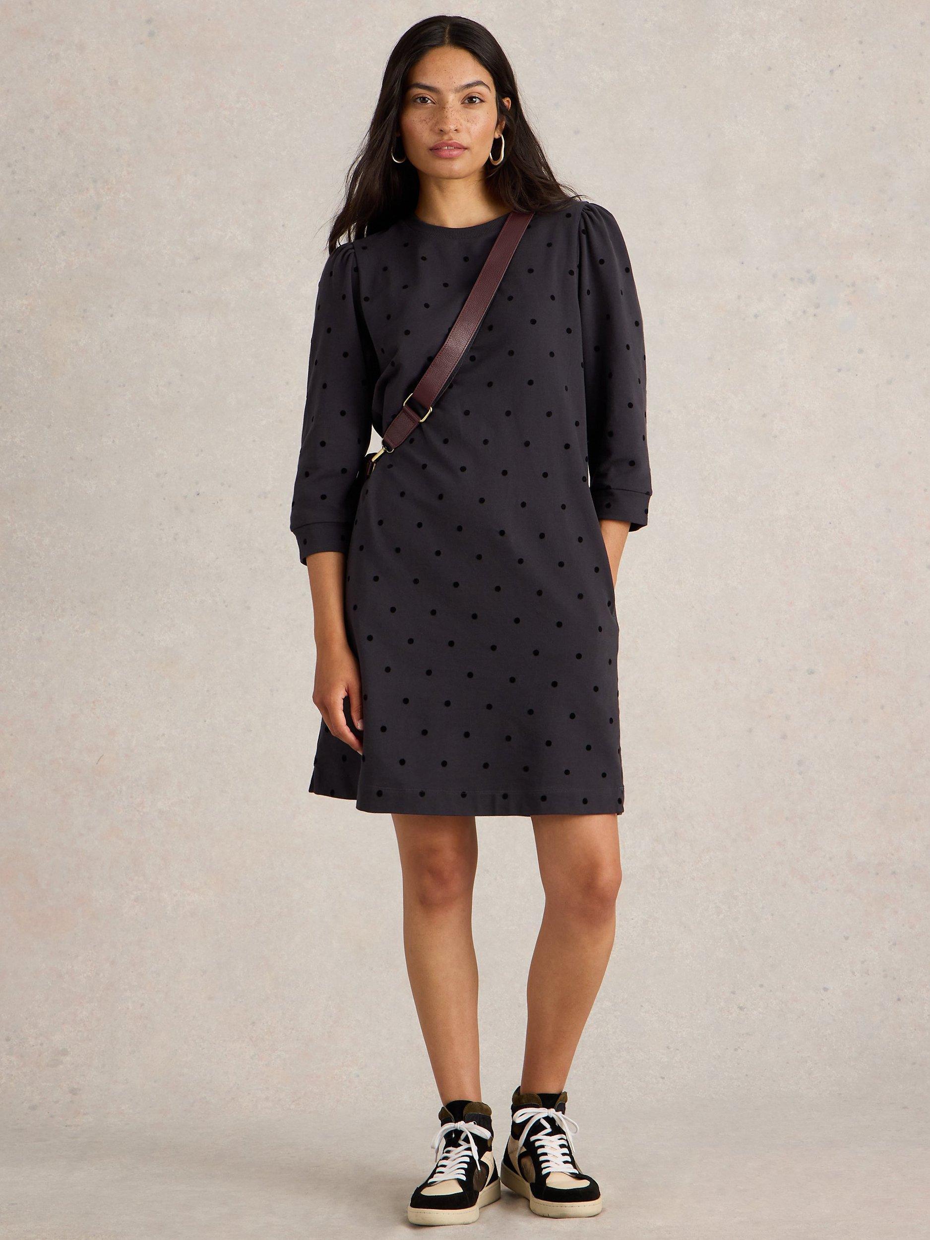 White Stuff Amy Organic Cotton Spotty Mini Dress Dark Grey Very well made.