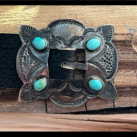 Vintage Native American Sterling Silver Turquoise Concho Belt Accessories Very well made.