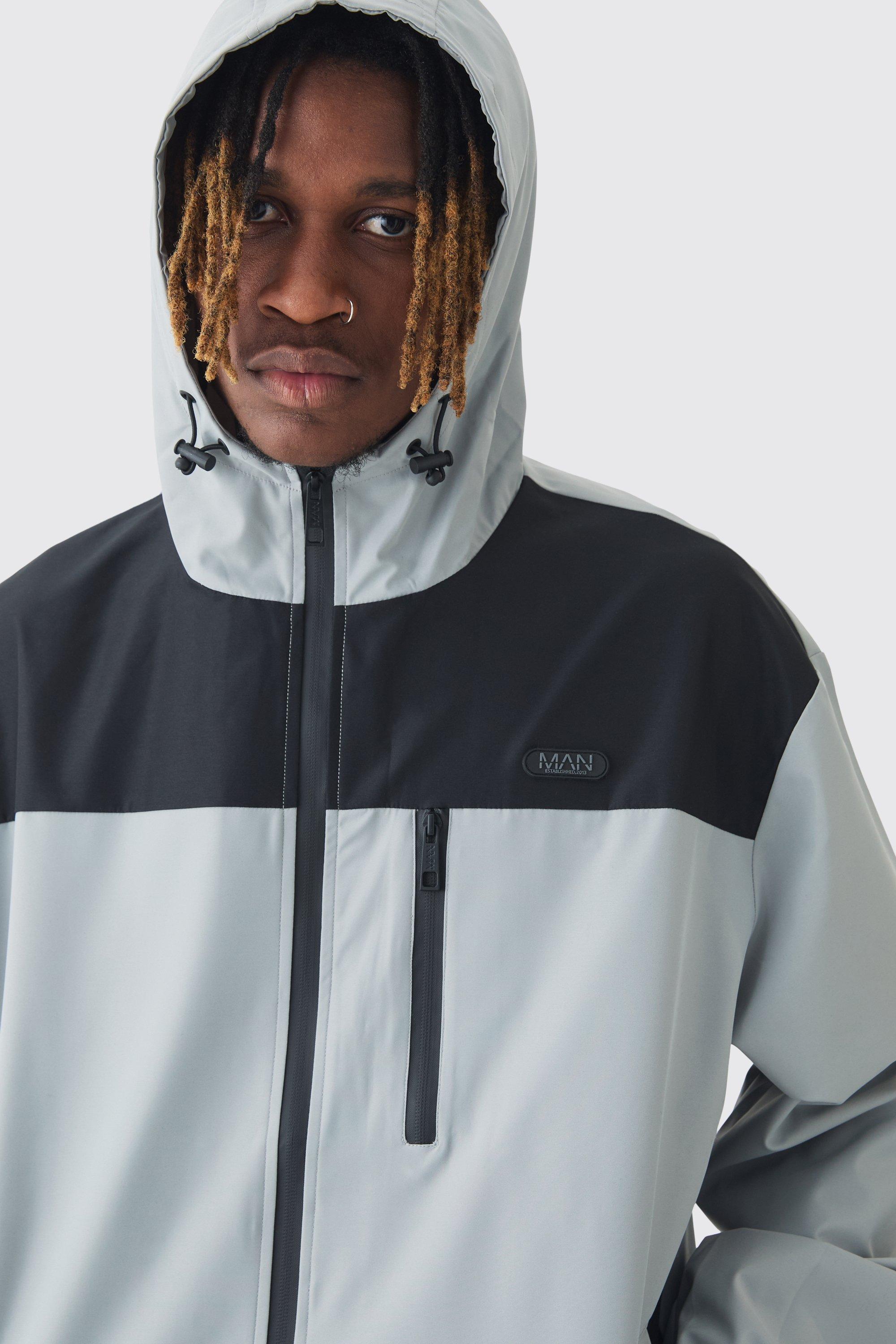 Tall grauer Oversize Colorblock Windbreaker mit Kapuze Very well made.