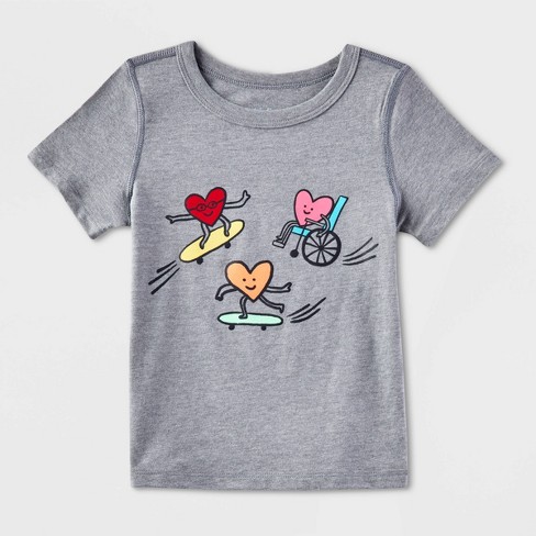 Toddler Kids Adaptive Short Sleeve Valentine s Day skating Hearts Graphic T shirt Cat Jack Gray Target Very well made.