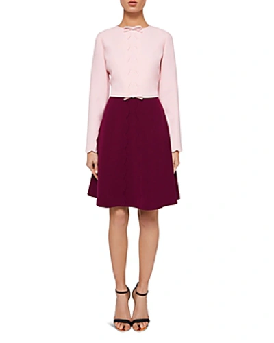Ted Baker Pink Purple Preenna Scalloped Bow Detail Dress Size 3 Mine Yours Very well made.