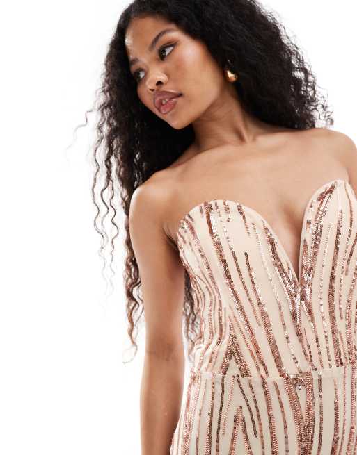 TFNC Petite sequin strapless maxi dress in gold ASOS Very well made.