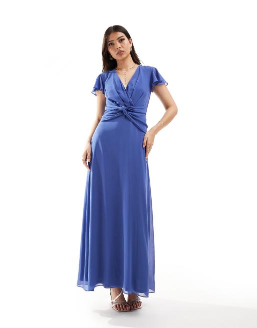TFNC Bridesmaid wrap front maxi dress in aster blue Very well made.