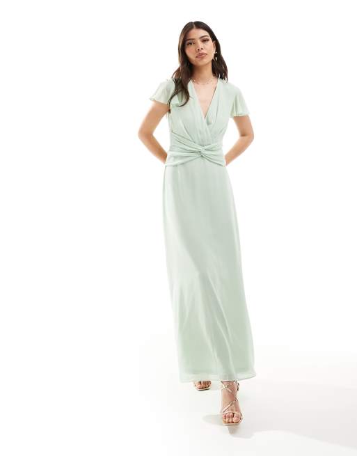 TFNC Bridesmaid chiffon wrap maxi dress in sage Very well made.