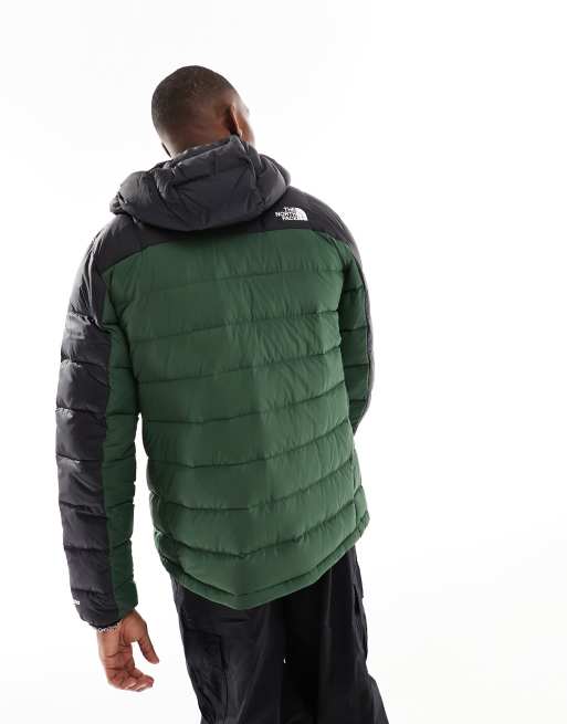 The North Face Lapaz hooded down packable puffer jacket in pine green and black Very well made.