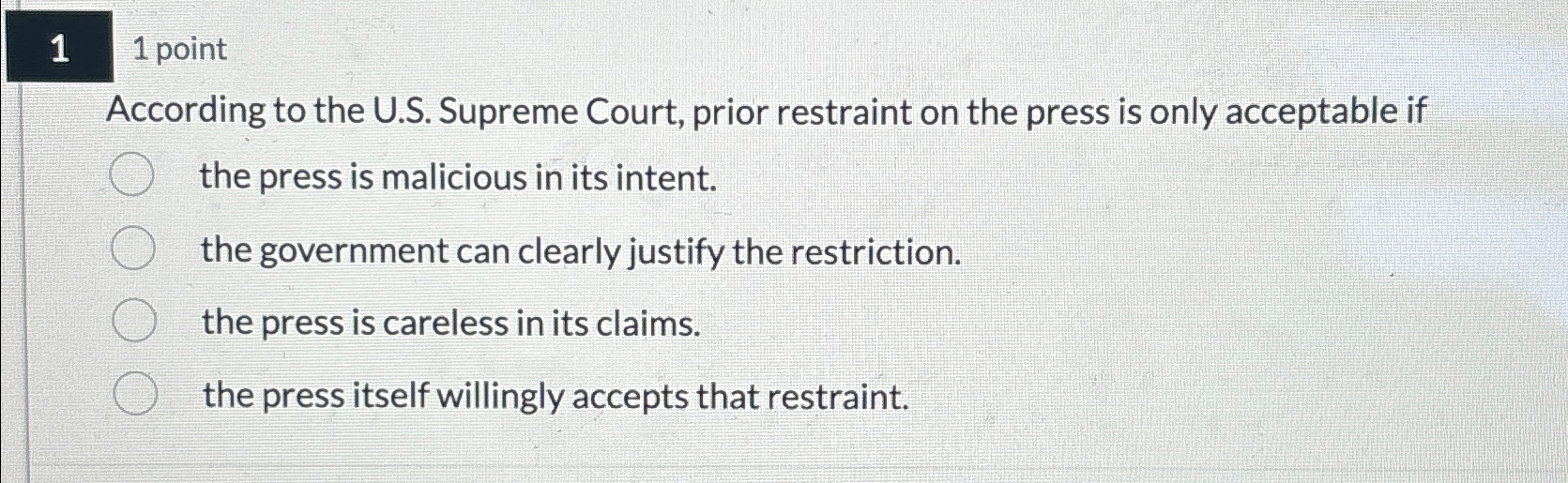 Solved The Supreme Court s position on prior restraint of Chegg Very well made.