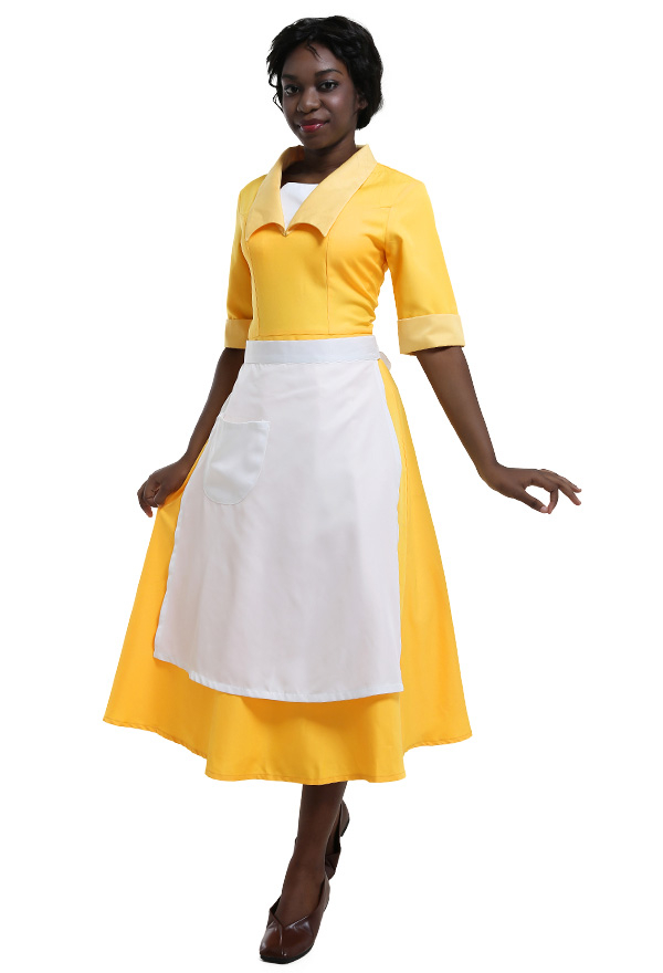 Tiana Adult Costume Waitress Yellow Dress The Princess and The Frog Cosplay Maid Very well made.