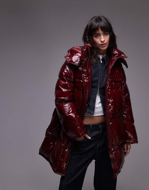 Topshop mid length puffer jacket with hood in burgundy Very well made.
