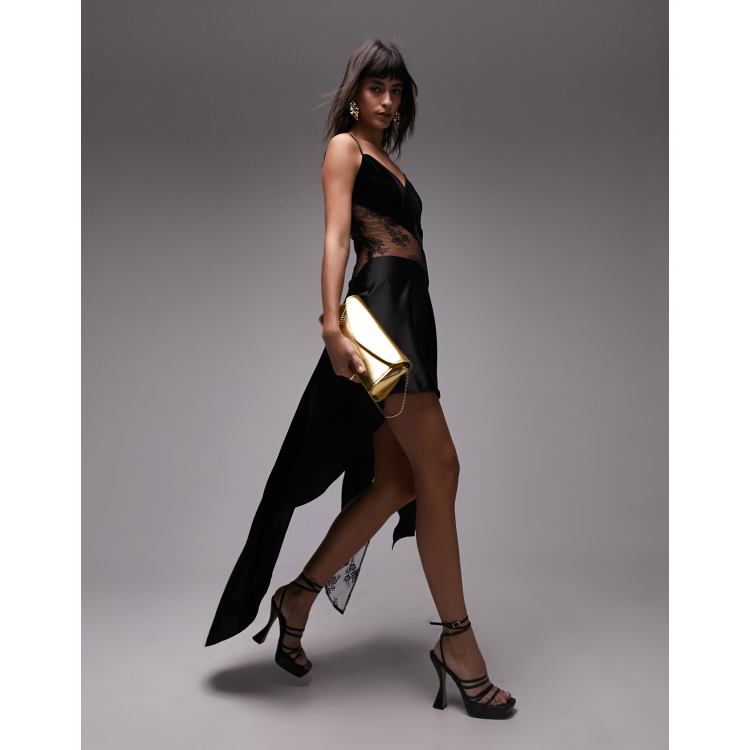 Topshop premium panelled cami slip dress with velvet and lace in black ASOS Very well made.