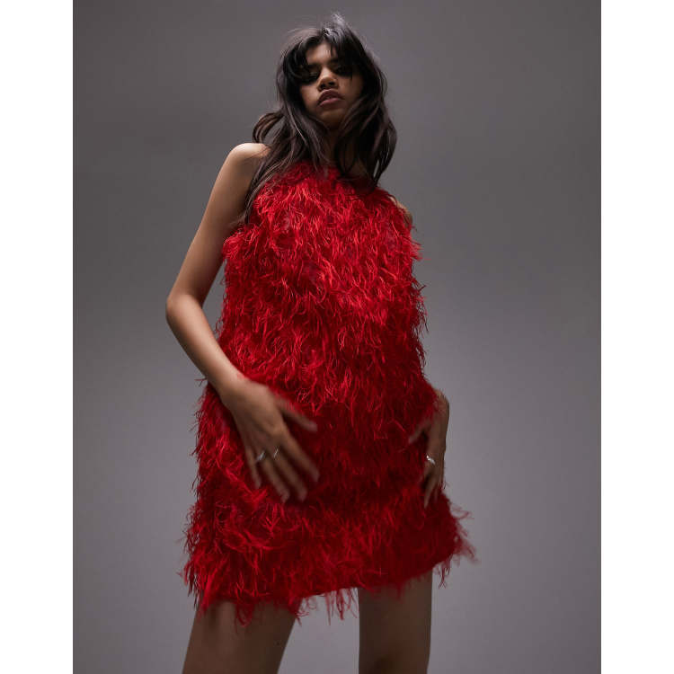 Topshop faux feather mini dress in red Very well made.