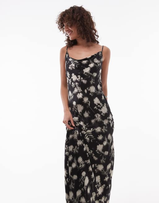 Topshop twist back cowl neck midi slip in mono floral satin Very well made.