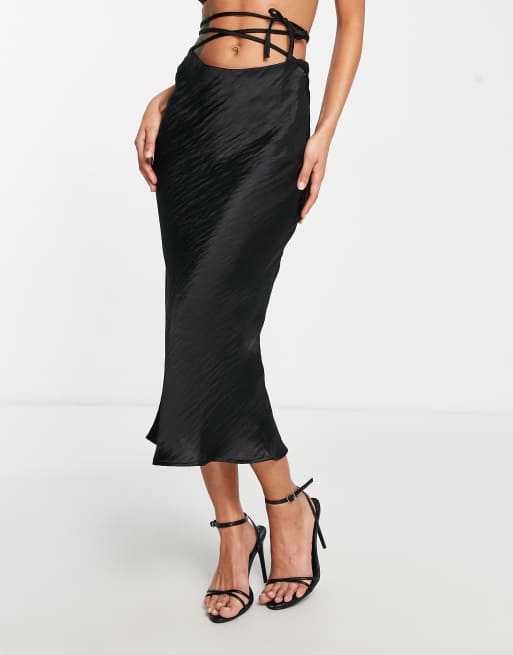 Topshop petite satin tie waist bias midi skirt in black Very well made.
