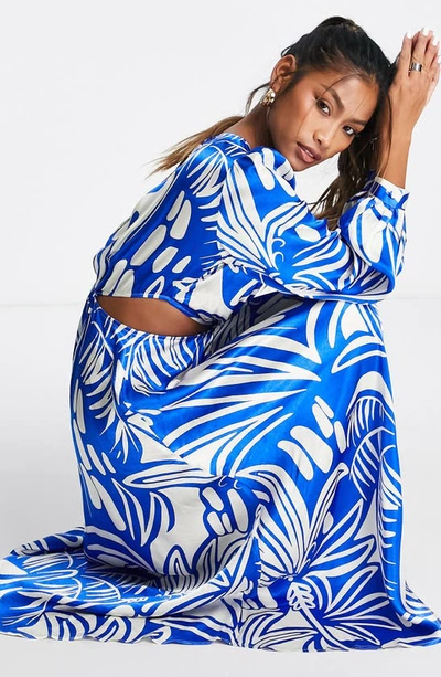 Topshop Plunge Neck Ring Detail Long Sleeve Dress In Blue ModeSens Very well made.
