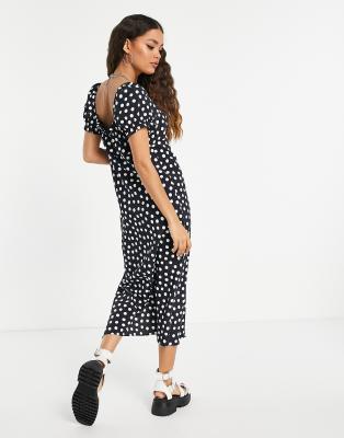 Topshop spot woven bardot midi dress in monochrome Very well made.