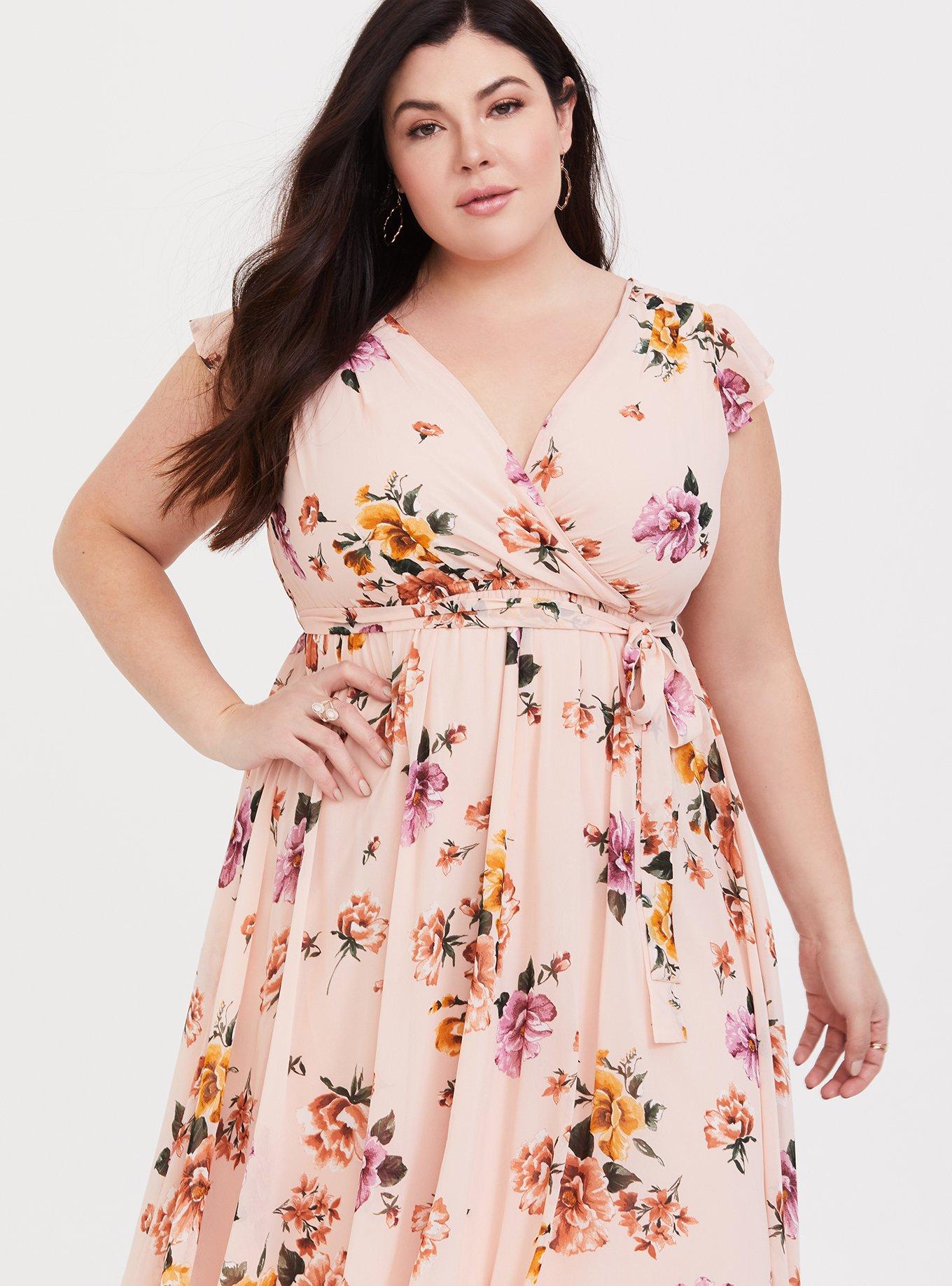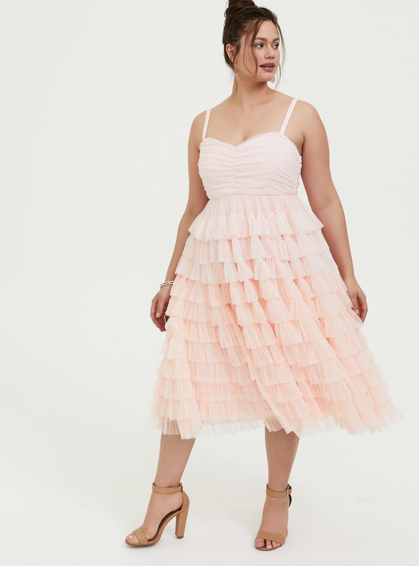 Plus Size Special Occasion Peach Pink Mesh Tiered Ruffle Midi Dress Torrid Very well made.