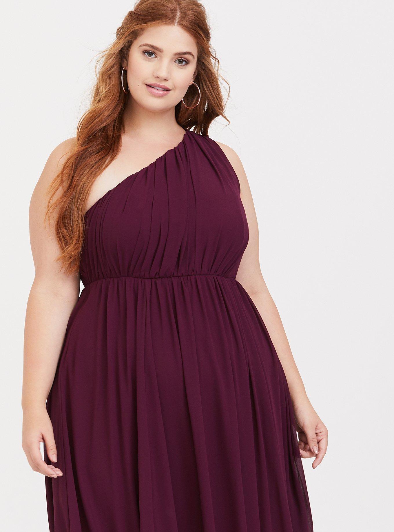 Plus Size Special Occasion Burgundy One Shoulder Chiffon Gown Torrid Very well made.