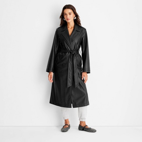 Women s Faux Leather Trench Coat A New Day Black S Very well made.