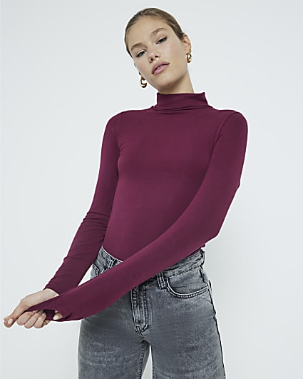River Island Petite heatseal turtle neck top in dark brown Very well made.
