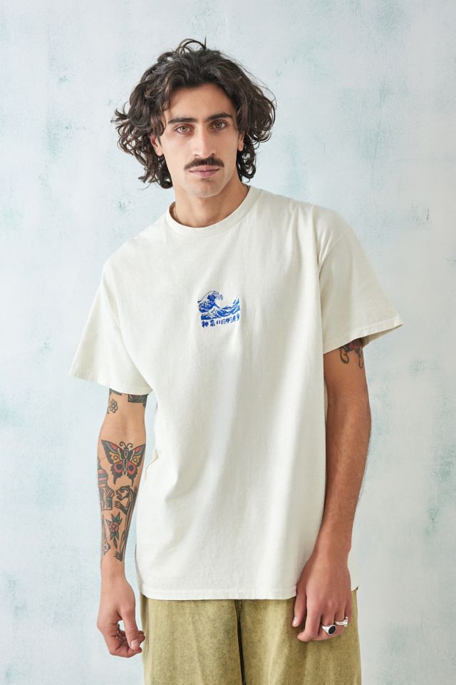 UO Besticktes T Shirt Hokusai in Steingrau Very well made.