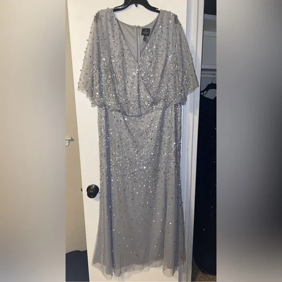 Adrianna Papell stunning dress Silver size 22w used once for a couple of hours Very well made.