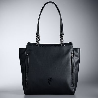 Simply Vera Wang Tote Handbag Black Man Made Leather Chains Very well made.