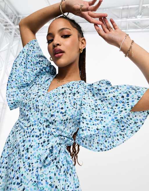 Vero Moda Curve wrap front maxi dress in light blue floral Very well made.