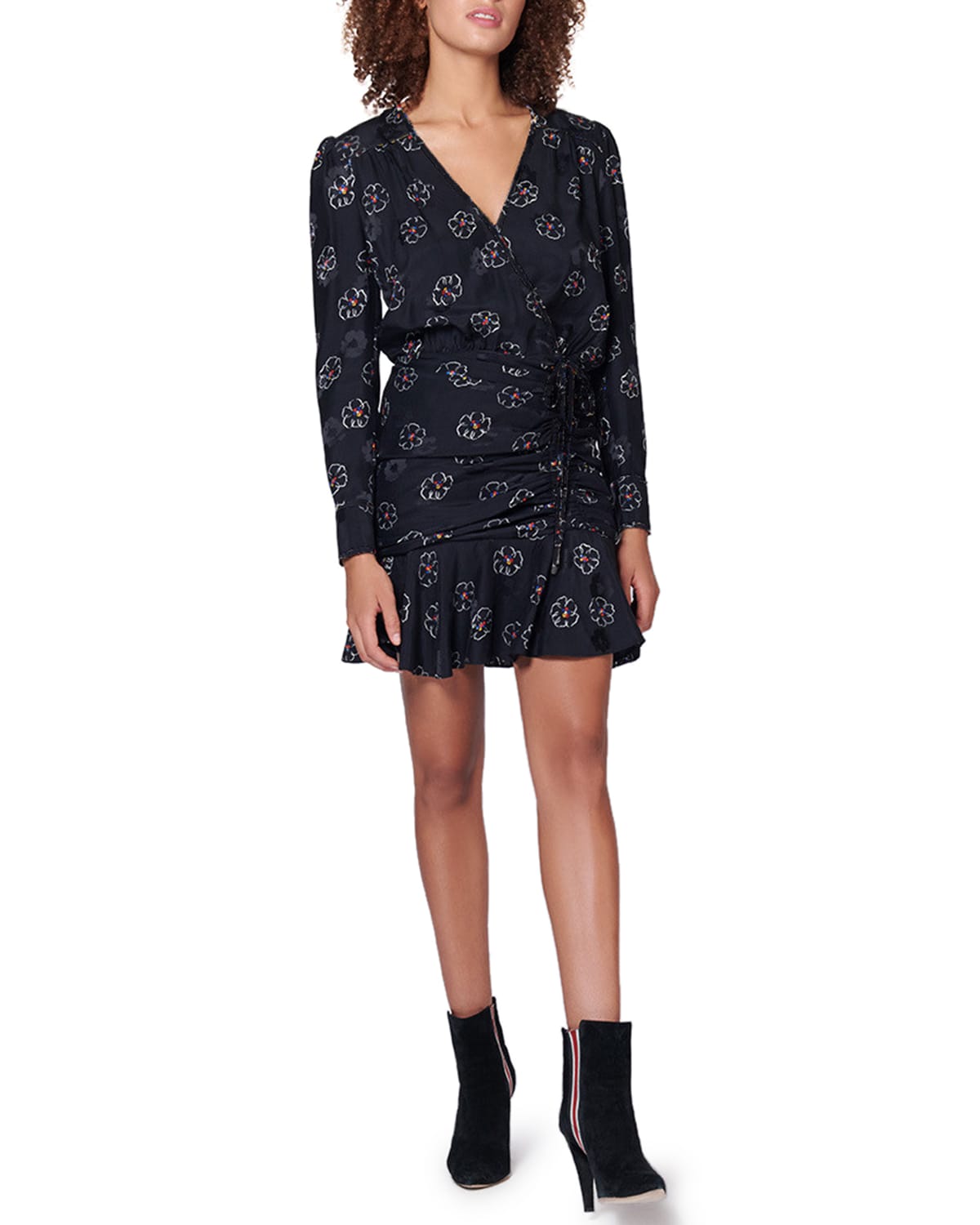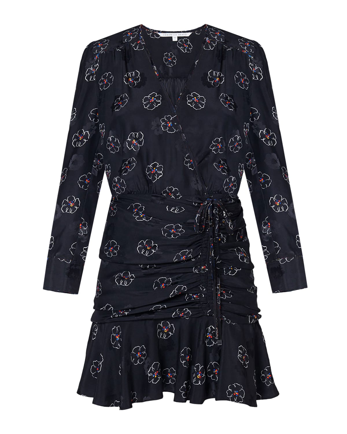 Veronica Beard Anders silk ruched mini dress 10 Long Sleeve V Neck Black Floral eBay Very well made.