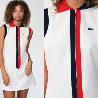 70s LACOSTE Dress Mod Mini Dress White Tennis Dress Chemise Shop Exile Tucson AZ Very well made.