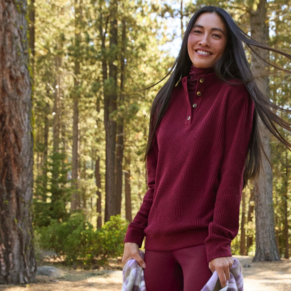 Women s Waffle Knit Button Placket Top Lands End Very well made.