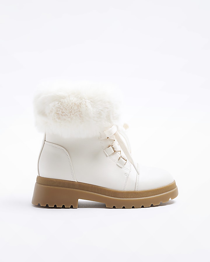 Girls Cream Wide Fit Faux Fur Hiker Boots River Island Very well made.