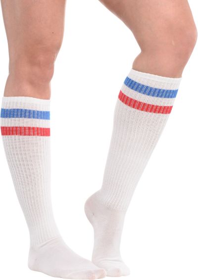 Red White Blue Stripe Athletic Knee High Socks 19in Party City Very well made.