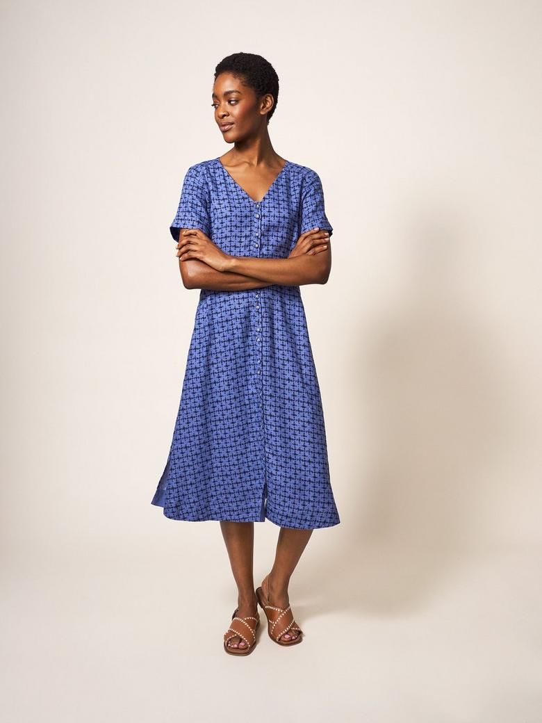 White Stuff Women s Ivy Linen Midi Dress Ladies Short Sleeve V Neckline Outfit Very well made.