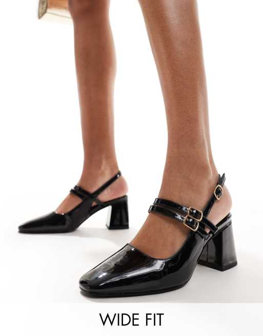 London Rebel Wide Fit Talia slingback mid block heel shoes in black ASOS Very well made.