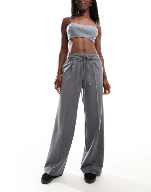 Stradivarius bow belt wide leg pants in gray Very well made.