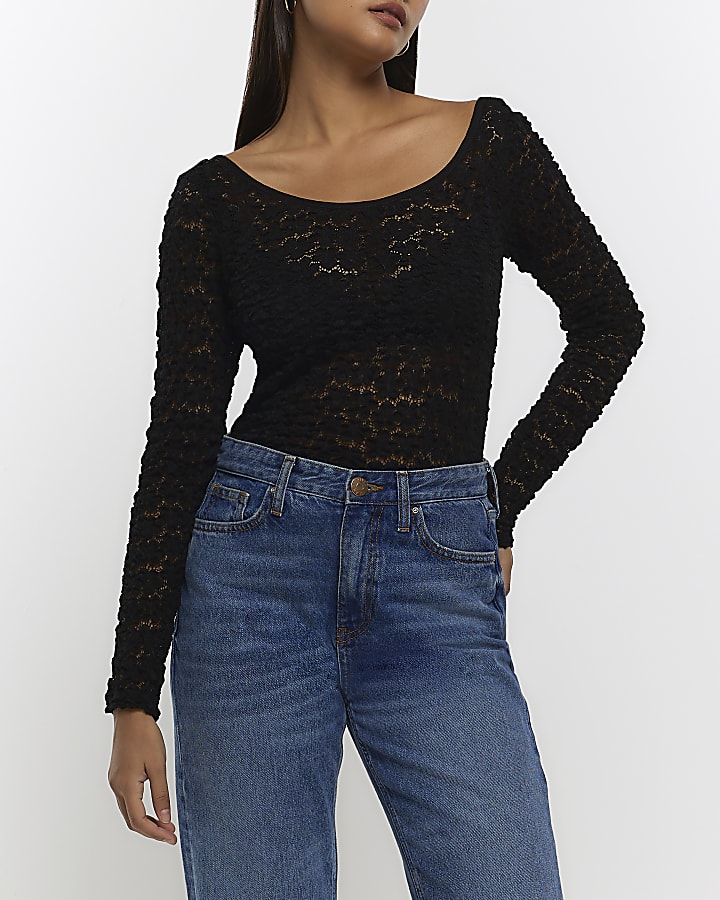 Black lace long sleeve top River Island Very well made.
