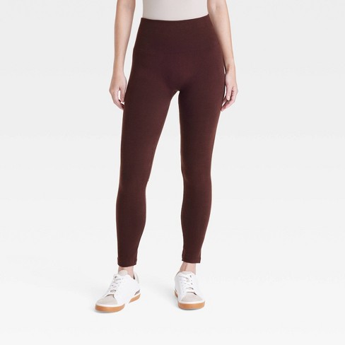 Women s High Waisted Cotton Seamless Fleece Lined Leggings A New Day Brown L xl Target Very well made.