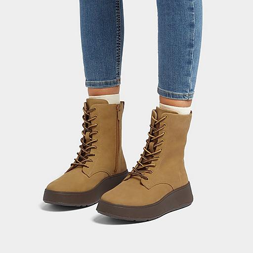 Fitflop Women s F Mode Leather or Nubuck Lace Up Flatform Ankle Boots Minky Gray Nubuck Very well made.