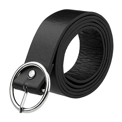 Elerevyo Women s PU Leather Belts Black Waist Belt with Pin Buckle for Jeans Round Silver Buckle Very well made.