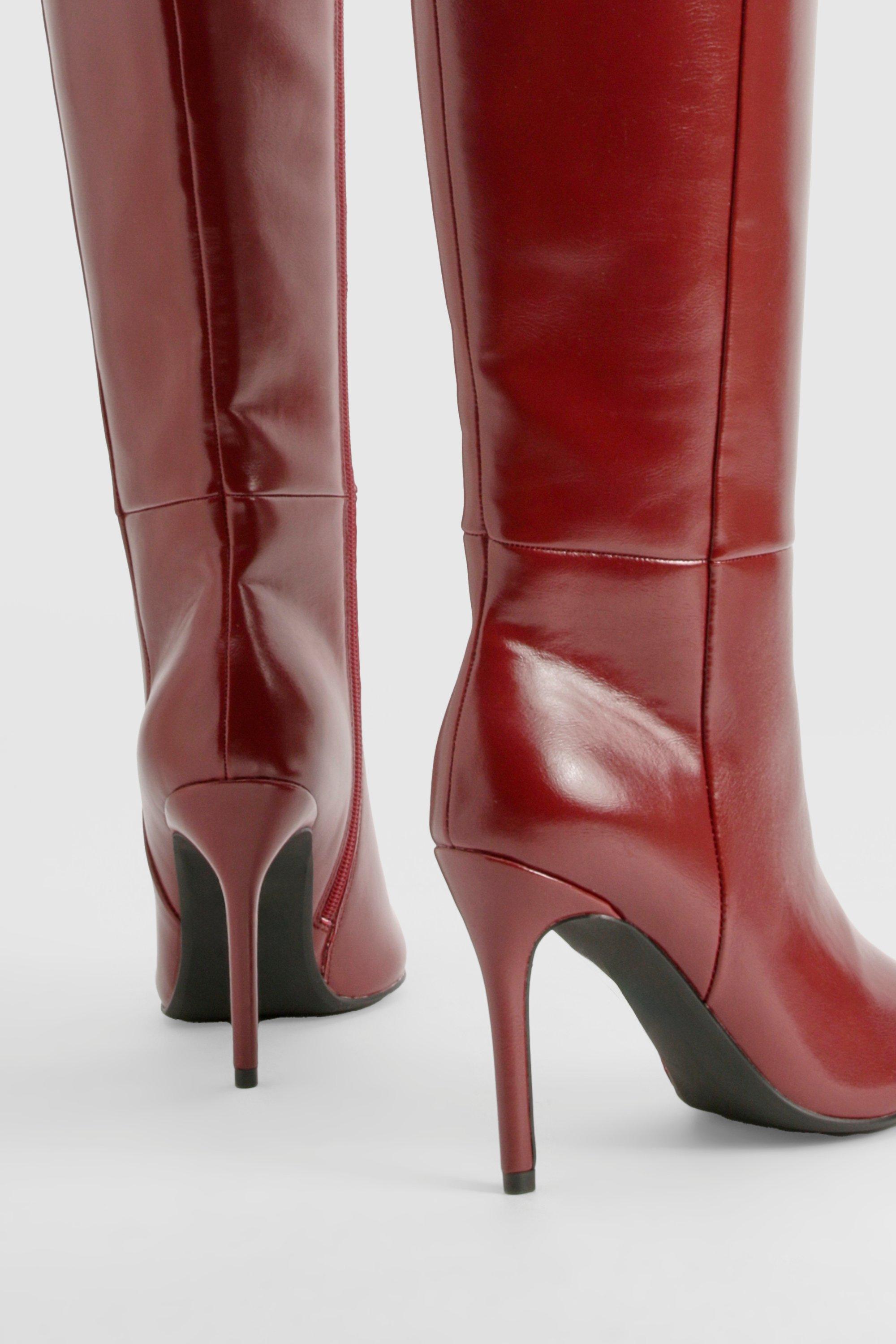 Cherry Red Angled Edge Knee High Heeled Boots Footwear PrettyLittleThing IRE Very well made.