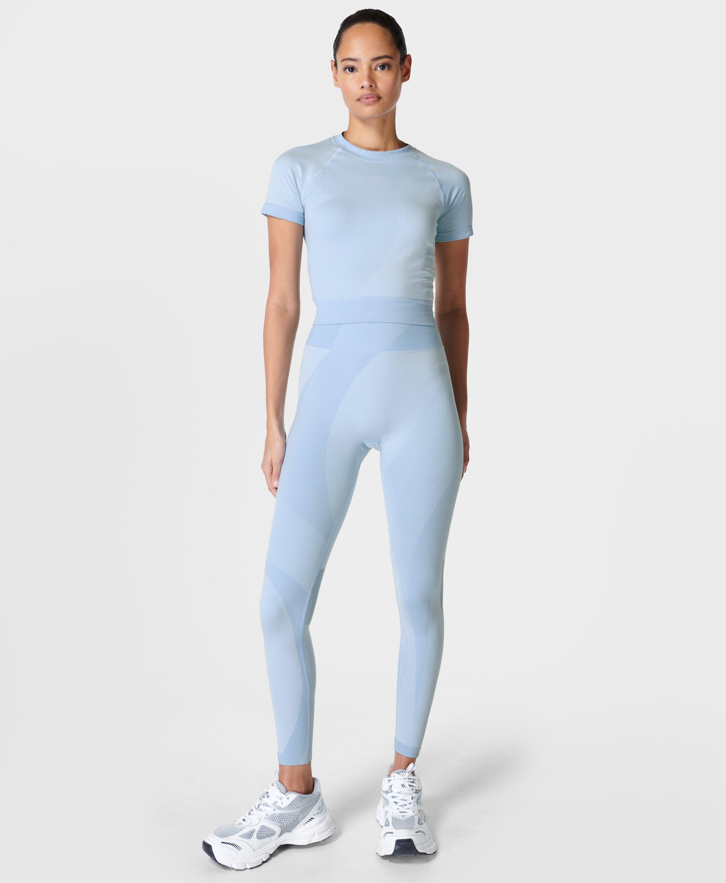 Infinite Seamless Workout Leggings Aluminium Blue Women s Leggings Sweaty Betty Very well made.